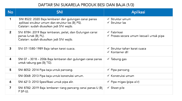 SNI Sukarela untuk Produk Besi dan Baja