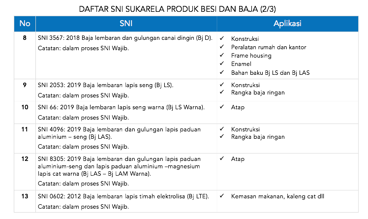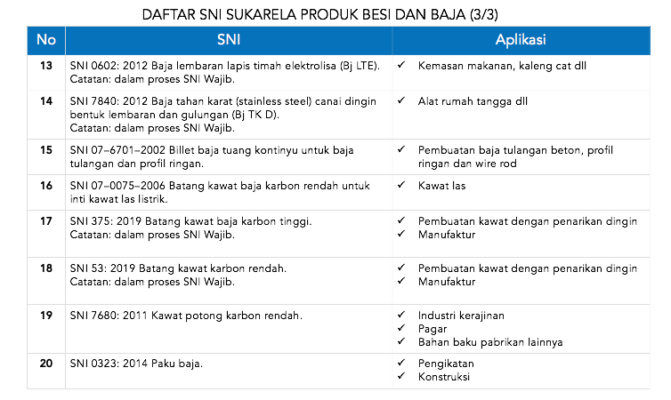 • SNI Sukarela untuk Produk Besi dan Baja